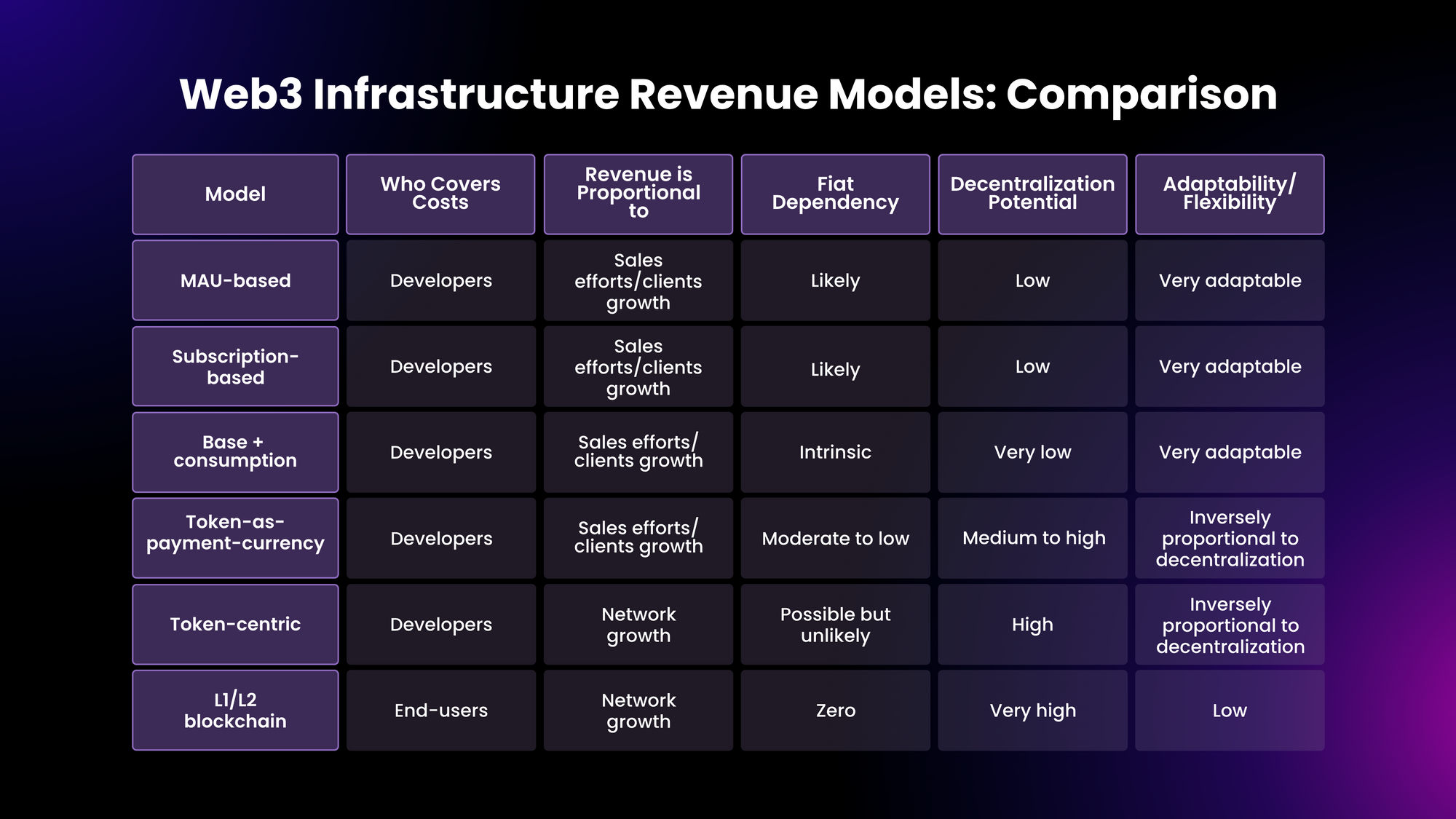 Prevalent infrastructure economic models in Web3