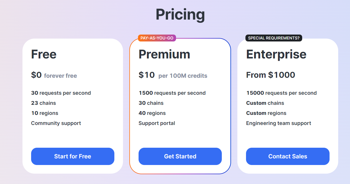 For the user, a tiered system like Infura’s might result in a substantial increase in price once they reach the limits of a package, forcing them to bump to a superior one. As such, they might prefer an MAU-based approach, paying per acquired user, or simply a model that proportionally charges them per interaction. A tiered model can also result in some features being out of reach for teams with fewer resources. For this reason, some providers might aim to combine this with a MAU approach, including an proportional fee per interaction additional to the package.