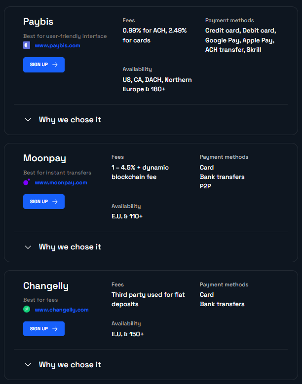 Some infrastructure providers, like fiat ramps, keep a straightforward, sales-based approach to generating revenue. In the case of these ramps, they typically charge applications a setup fee, plus a variable percentage of the transactions going through their infrastructure. As shown below, these might vary based on features and other factors.