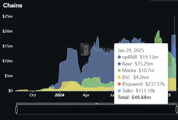 KiloEx focuses primarily on the opBNB and Manta communities, although it’s also grown significantly on Base over the last quarter.