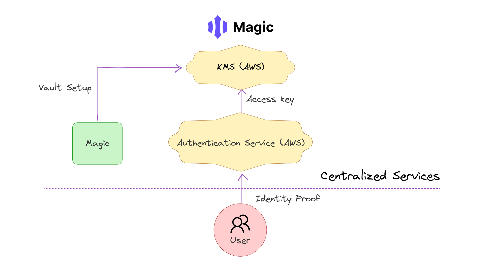 Custodial risk: If the KMS is configured to be custodial, your users might not have full control over their keys. This can be a significant risk in a decentralized setting. Solutions like Magic use KMS and, although they advertise their solutions as non-custodial, it’s important to keep in mind that, by using services like AWS to store keys, they ultimately retain control over them. Such a solution where a WaaS retains full control over control technically gives a provider the ability to decrypt keys by changing their key policy.