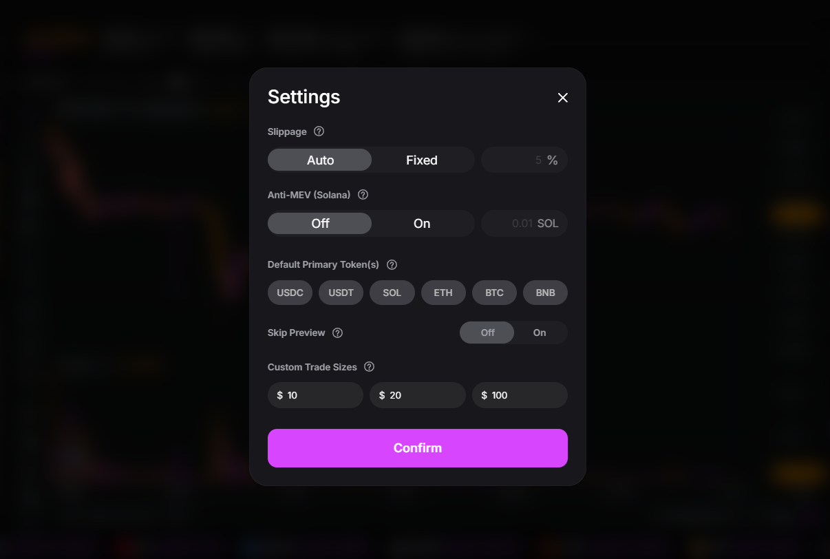 For Solana trades, on the other hand, UniversalX has optional, dynamic protection. This can be toggled by a user in their trading settings: