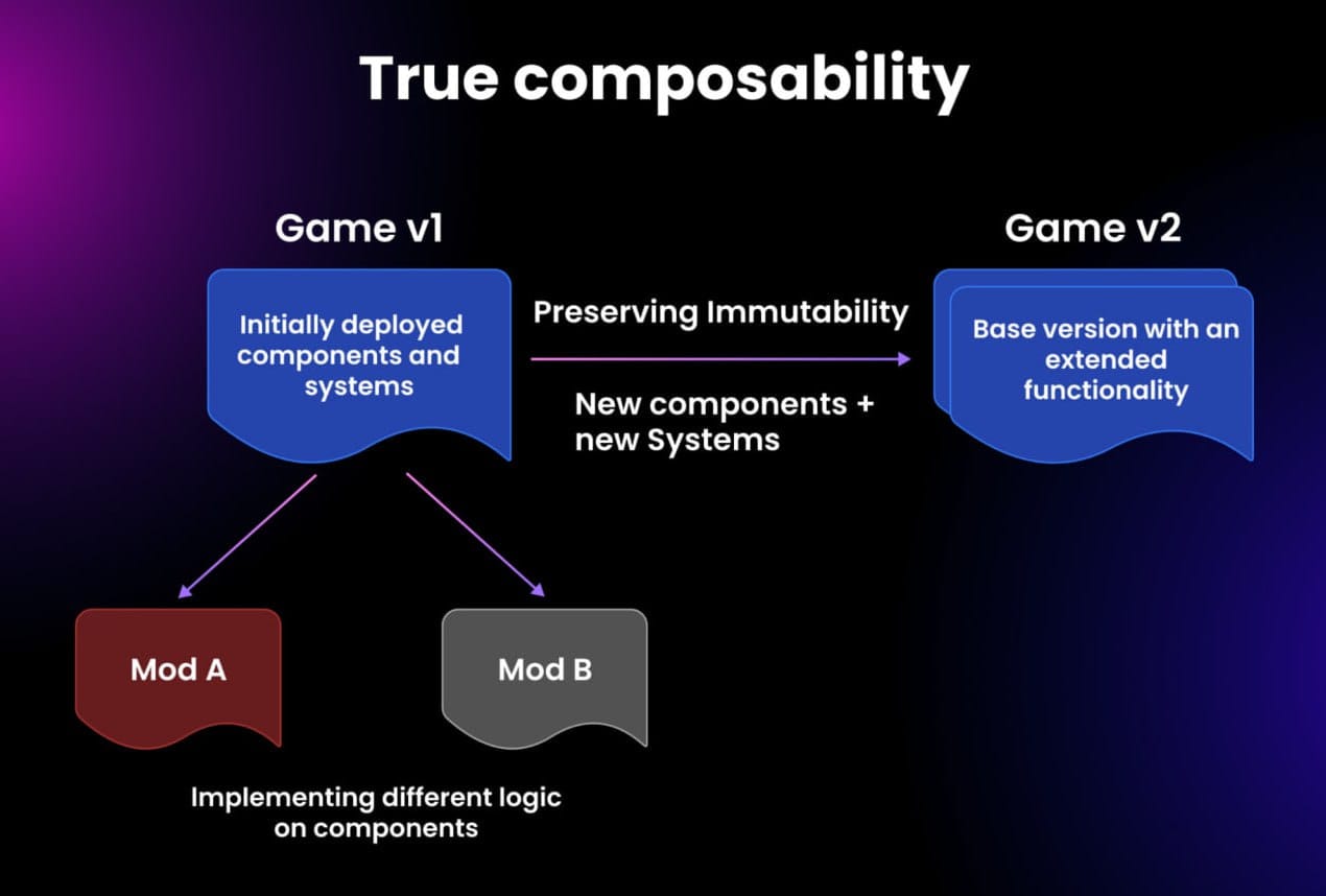 Modularity also may allow core developers and DAOs to add new features or perform updates without significant downtime or disruption. This makes it an ideal feature for FOCGs, where the community should be able to introduce new aspects to a game permisionlessly.