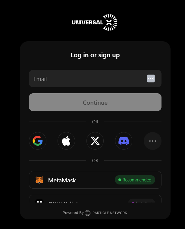 - If you opt for a Web3 wallet, a prompt will request that you connect your wallet to UniversalX.