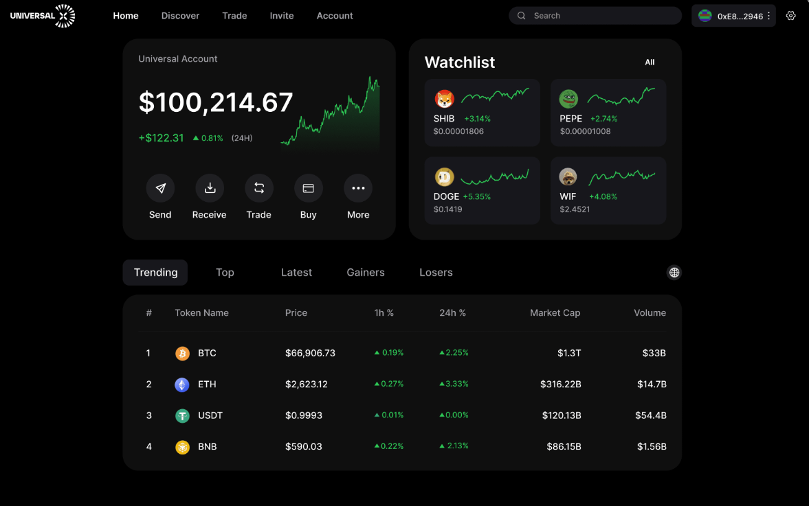 With your Universal Account, you can send, receive, and trade cryptocurrencies across multiple blockchains without bridging.