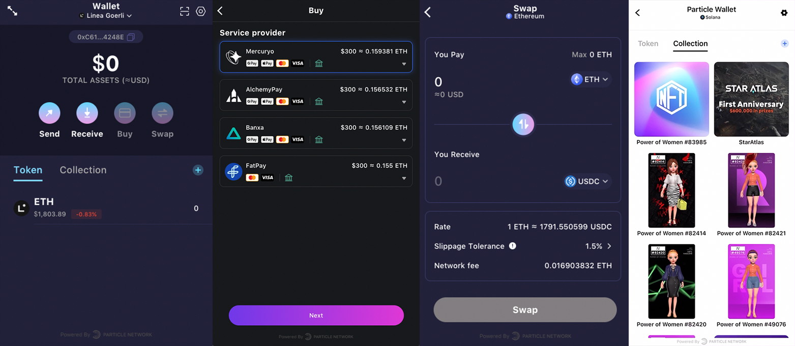 Particle Network’s support for Linea is multifaceted, encompassing seamless authentication, wallet-as-a-service capabilities, and comprehensive middleware solutions, including node APIs, IPFS, NFT, and data analytics.