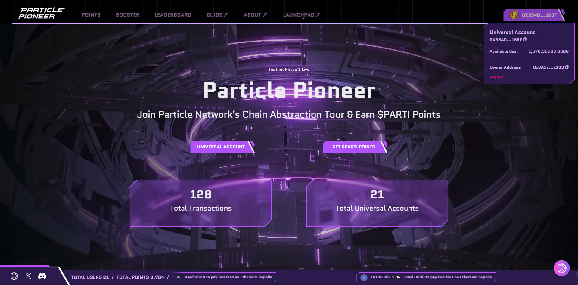 Along with the Testnet, we’re also rolling out the Particle Pioneer platform, where you can experience chain abstraction while earning $PARTI points. These points entitle you to rewards from Particle Network and other ecosystems, including The People’s Launchpad.