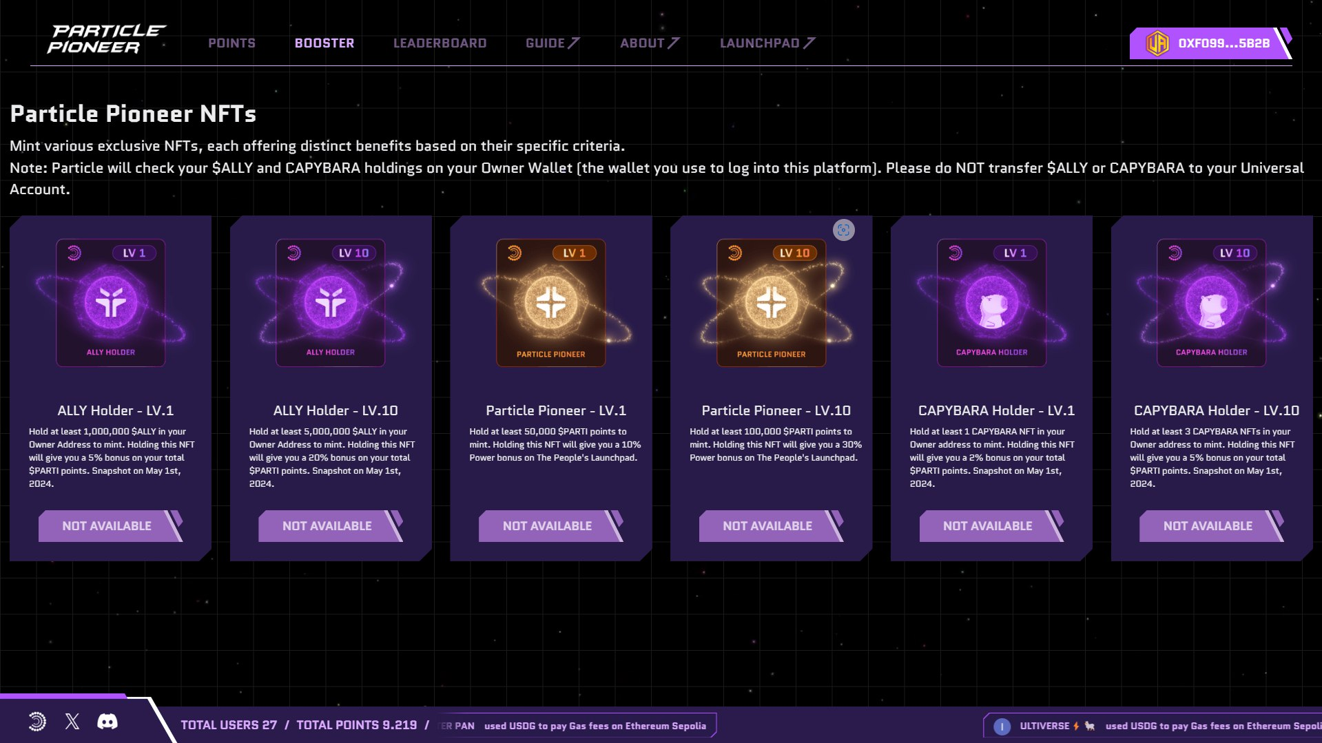 - Earn additional bonuses by holding exclusive tokens of The People’s Alliance like $ALLY and CAPYBARA NFTs on your Owner Account. Your points can also award you a bonus on The People’s Launchpad.
