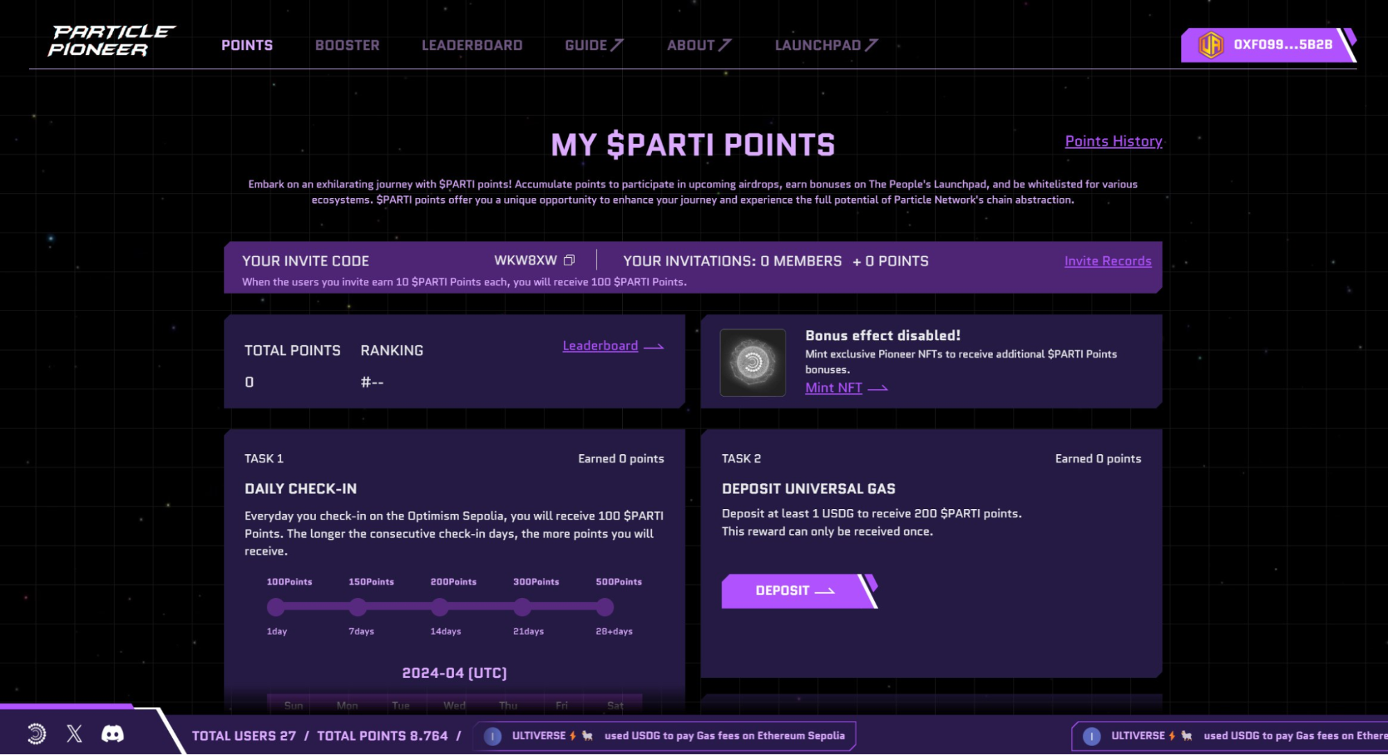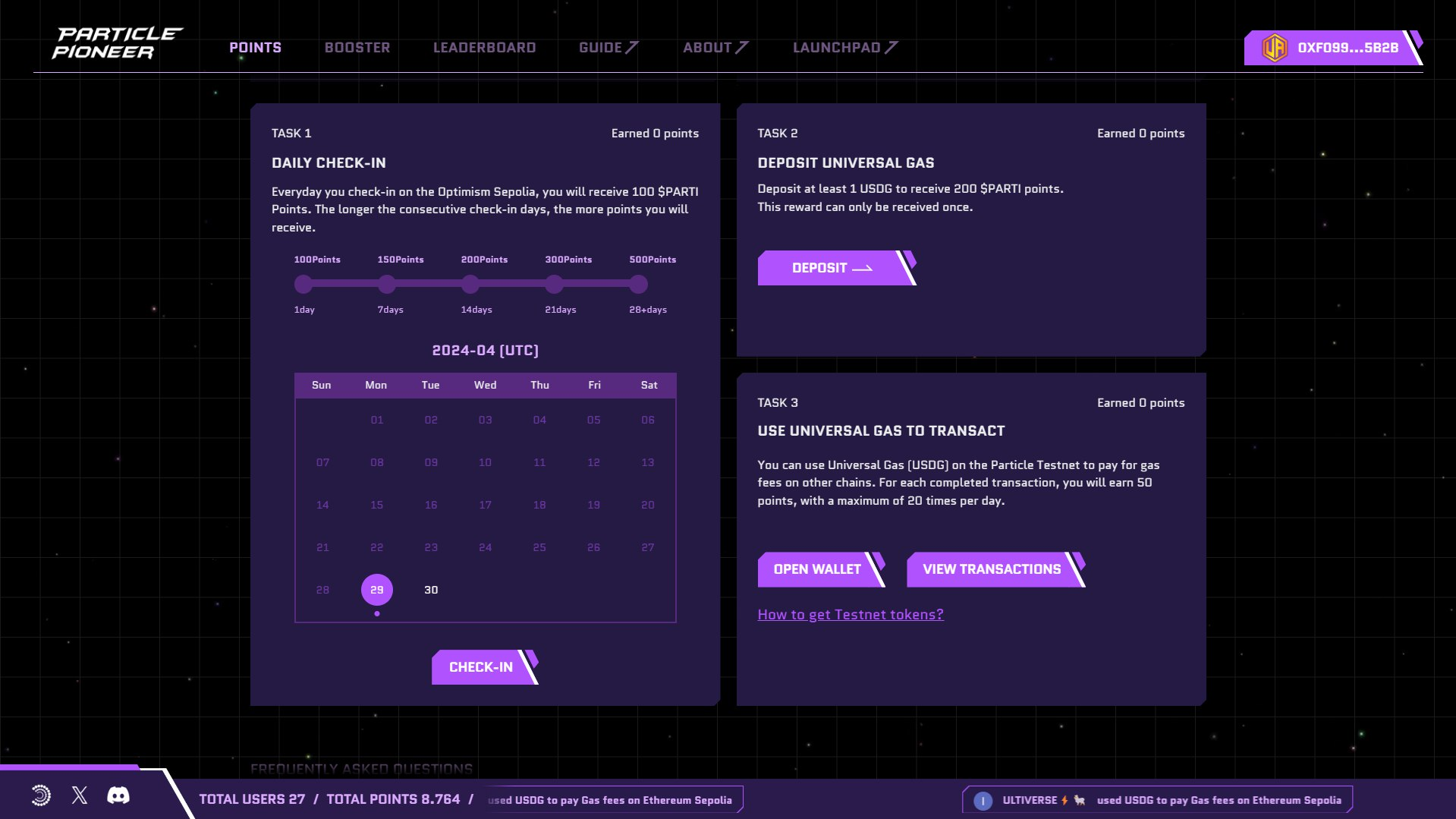 - Earn points by inviting friends, performing daily check-ins, depositing Universal Gas, and transacting with your Universal Gas.