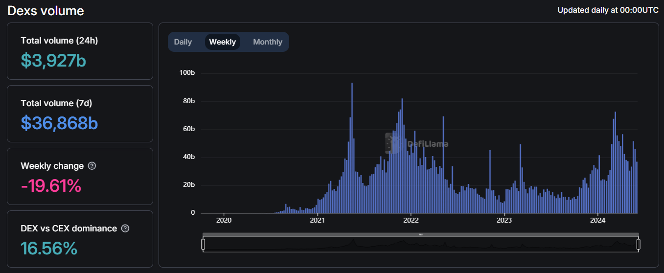 - The dominance of CEXs over DEXs –a useful metric showcasing the convenience of users managing their own assets within a fragmented ecosystem.