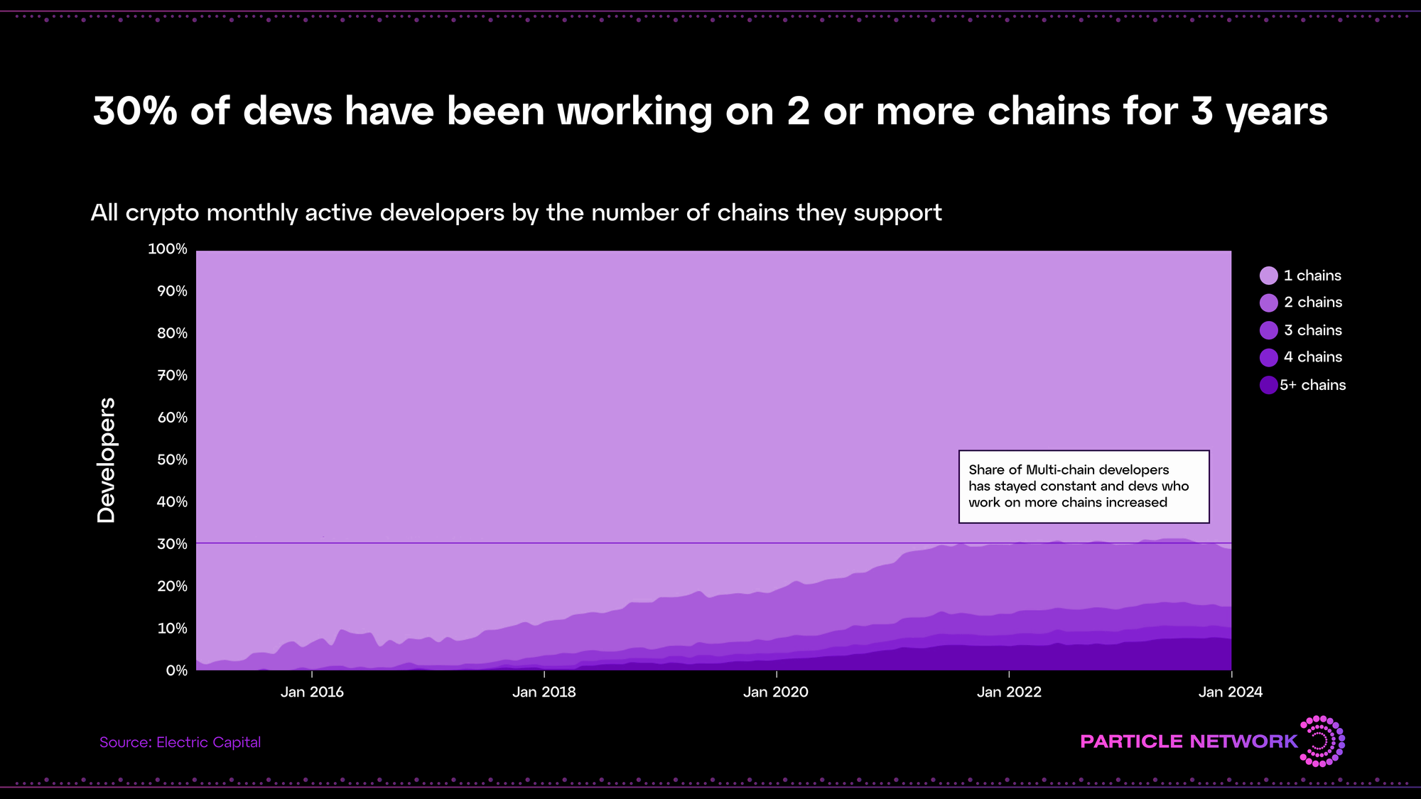 However, the realities of fragmentation not only push most developers to silo themselves into an ecosystem: they also force a growing base of the workforce to spread their time and input across multiple chains –often to replicate their work in an effort to fully leverage several at once.