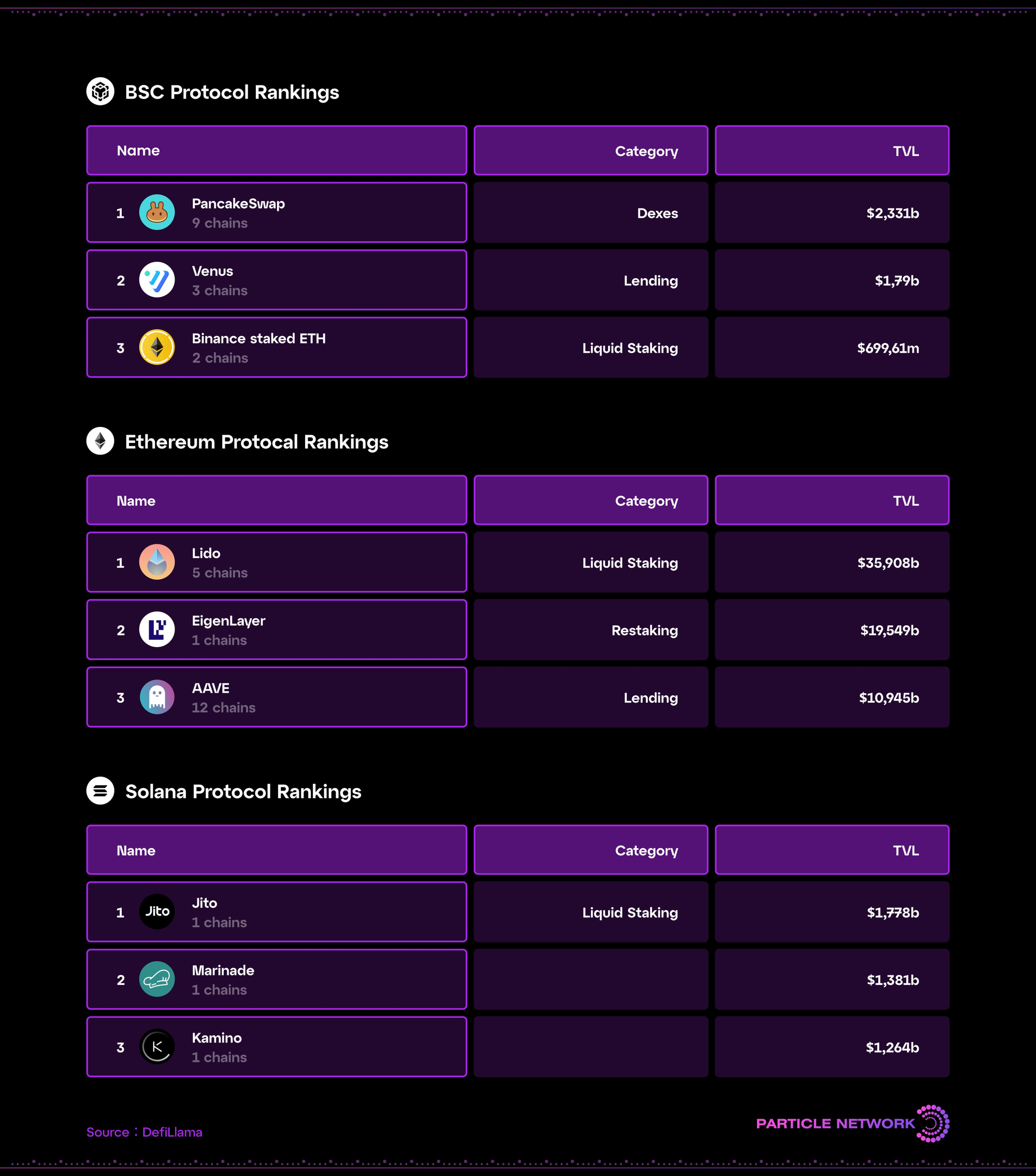 - The popularity of products outside the most popular financial applications in each chain and the importance of these products for the ecosystem within their own paradigm.