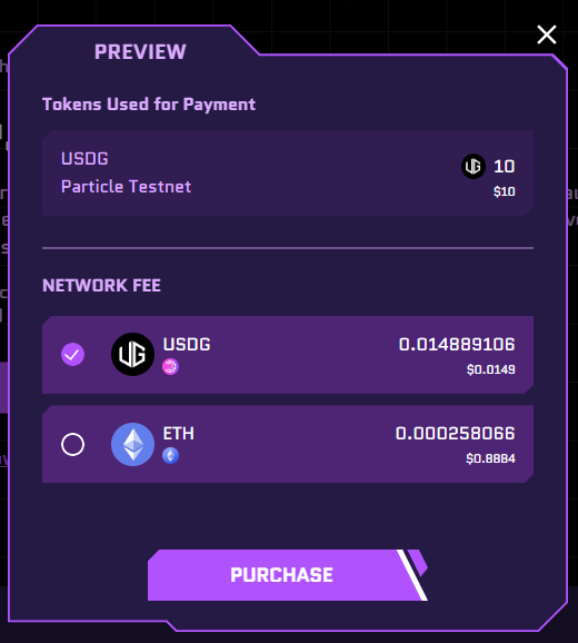 - Click “Purchase” to initiate the process. Select which tokens to pay with and click “Next” once you’re done.