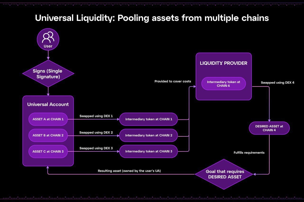 UAs allow you allow you to visualize and use your assets from multiple chains as a single balance. This means that, regardless of the chain(s) hosting your assets, they will be effectively pooled together, usable for any transaction you wish to execute on any chain.