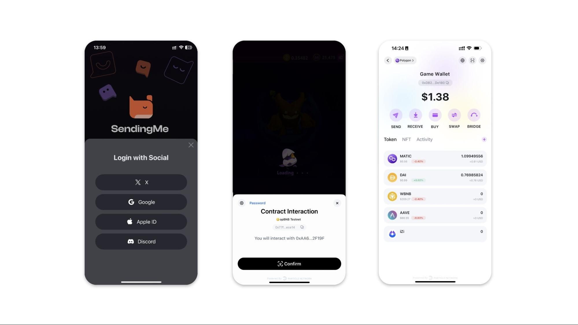 WaaS-based approach: By putting the wallet experience directly in-app, WaaS providers can simplify the user experience to a considerable degree, removing the need for additional software. The user interacting with an in-app wallet can also access it via a Web2 login (email, Google account, social accounts, etc.), instead of actively managing keys. In Particle Network’s case, this is achieved via Threshold Signature Schemes using Multi-Party Computation that ensure that users are the only ones with the ability to access their wallets. Particle also streamlines transaction signing to reduce the amount of interactions between a user and their wallet, and opens the possibility of transaction batching and bundling to make the user experience faster and easier.